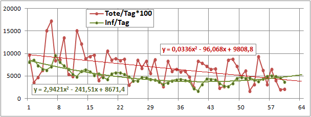Tägliche Neuinfektionen und Sterbefälle Deutschland.