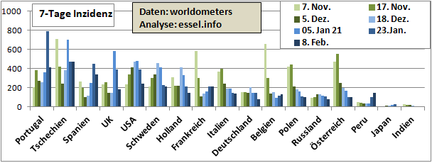 Starke Zunahme in Tschechien, Schweiz, Portugal, Östereich.