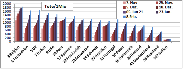 Belgien flacht auf hohem Niveau ab, wird von Schweiz eingeholt.