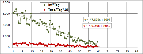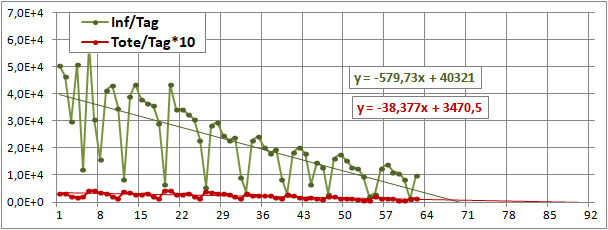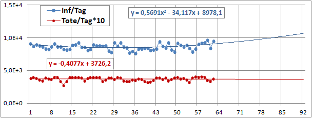 Sterbeinzidenz (pro Woche, pro 10 Mio Einwohner) wäre auf frühere (vor 18 Tagen) Inzidenz zu beziehen.