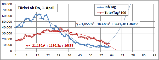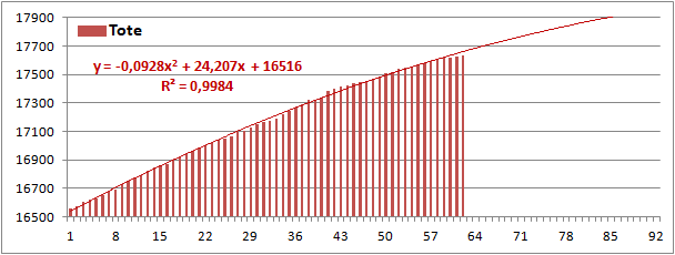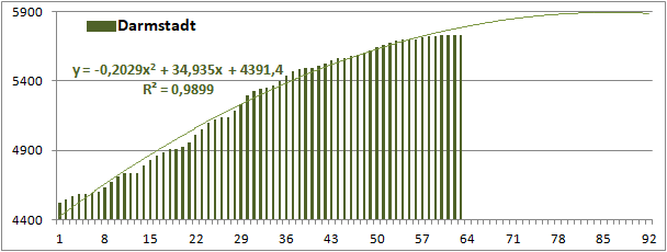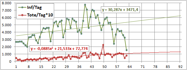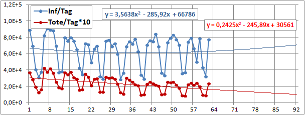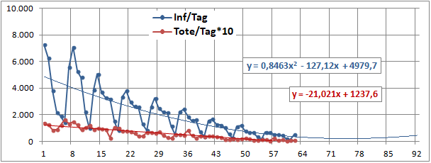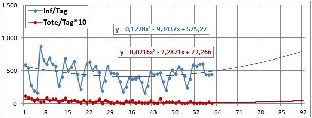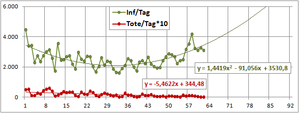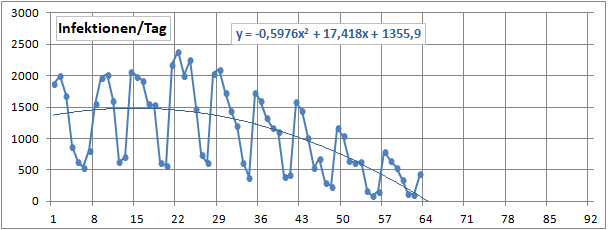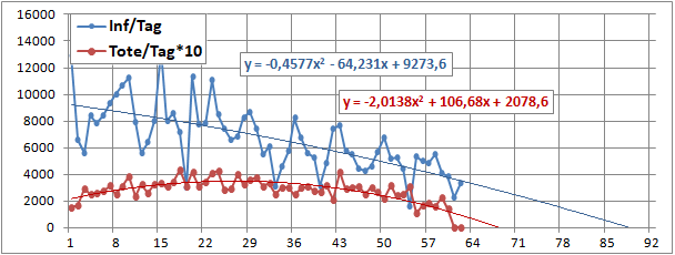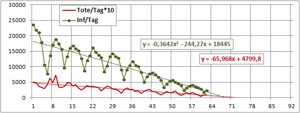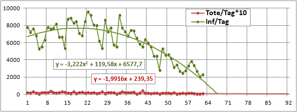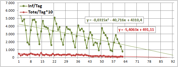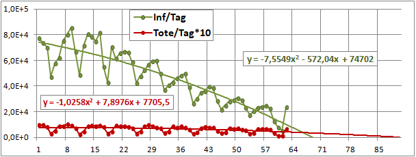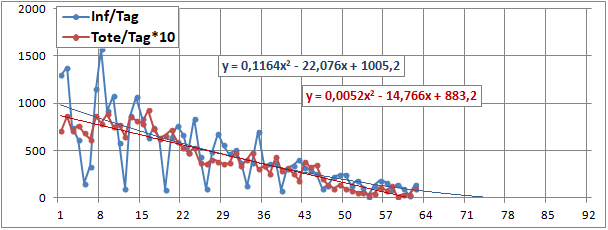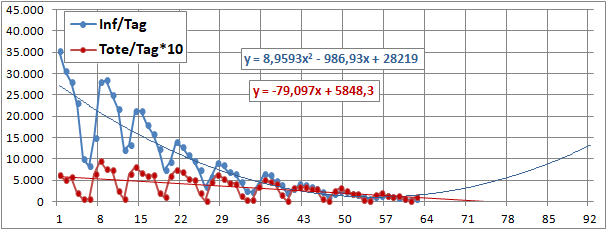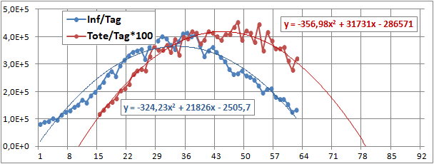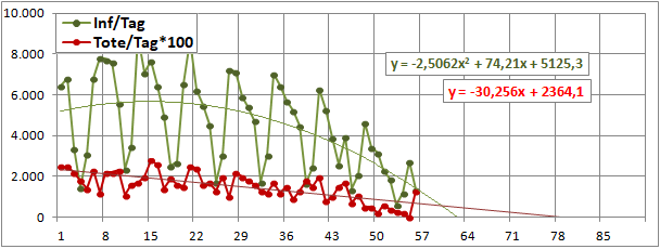 2 Fitbereiche: 5 (quadratisch) und 4 Wochen (linear) bis heute!