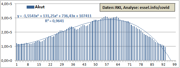 Entwicklung der Zahl der noch akut Ansteckenden.