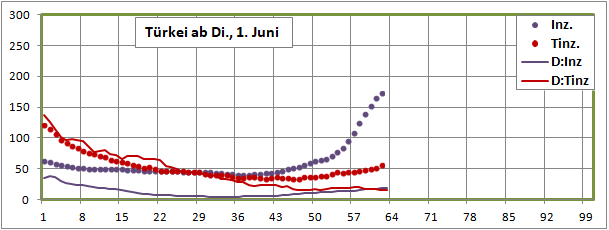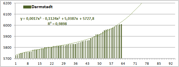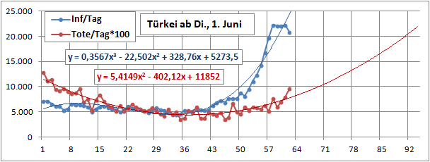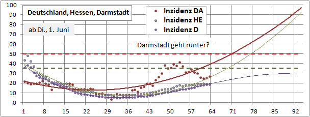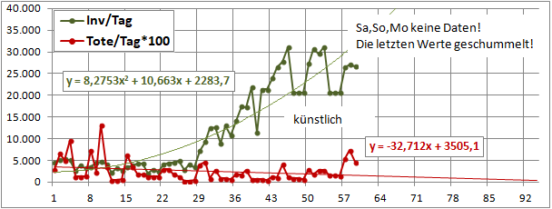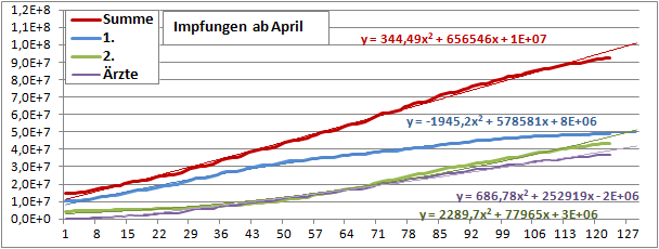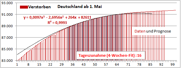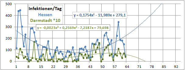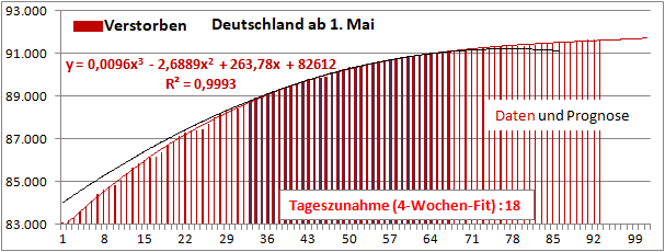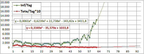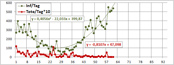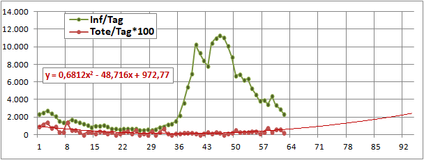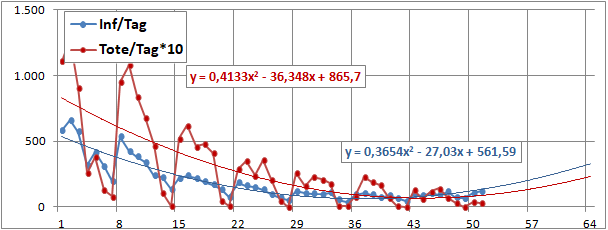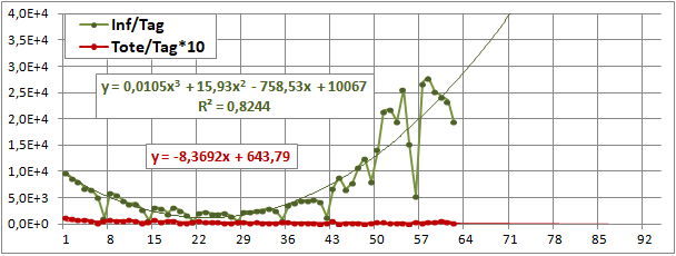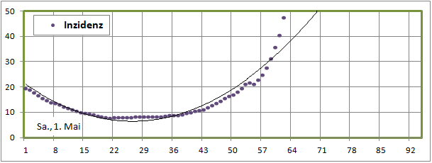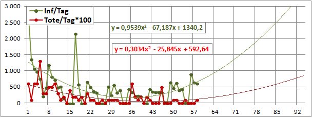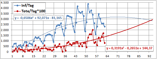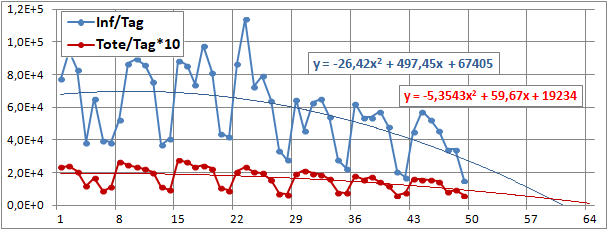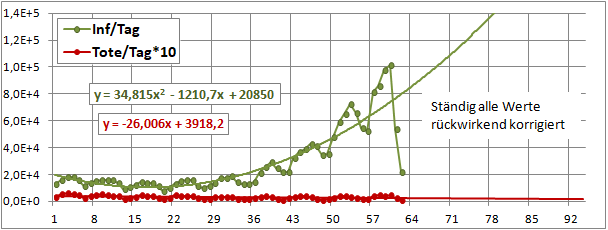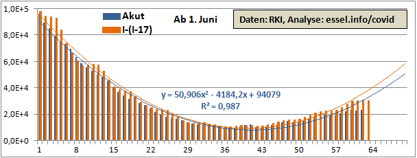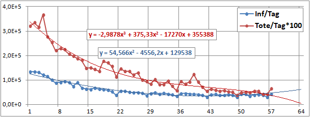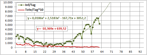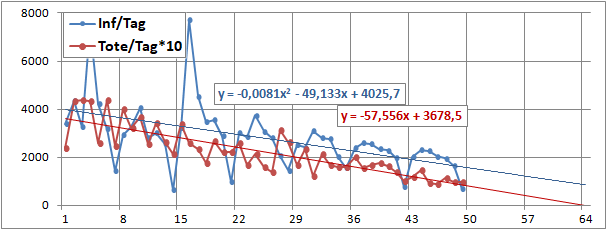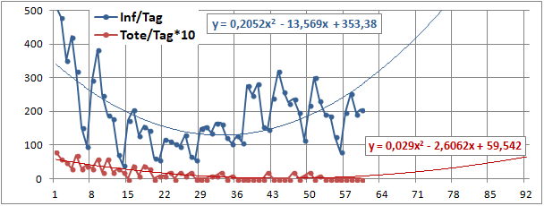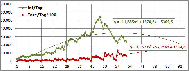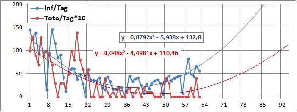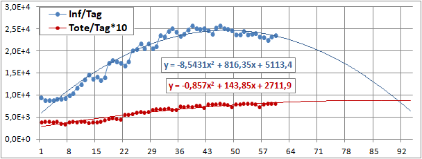2 Fitbereiche: 5 (quadratisch) und 4 Wochen (linear) bis heute!
