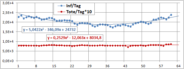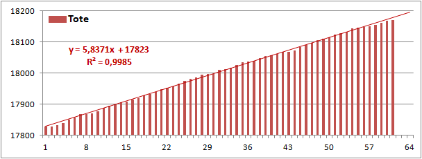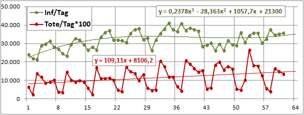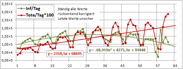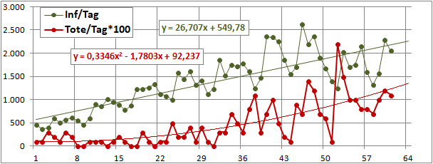 Sterbeinzidenz (pro Woche, pro 10 Mio Einwohner) wäre auf frühere (vor 18 Tagen) Inzidenz zu beziehen.