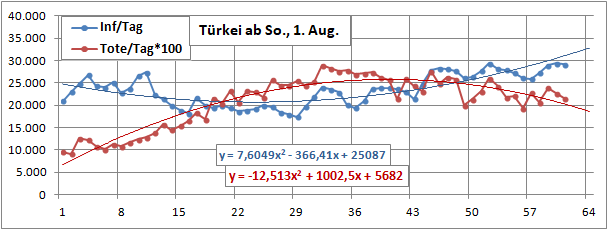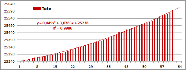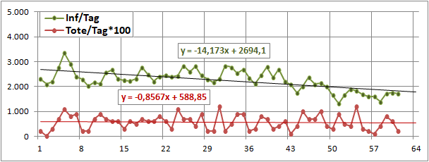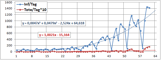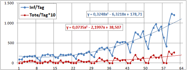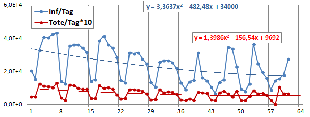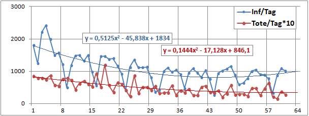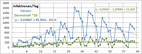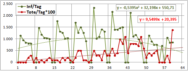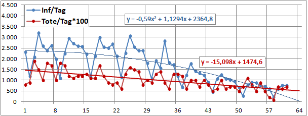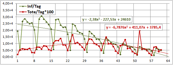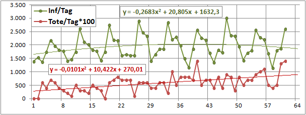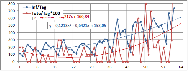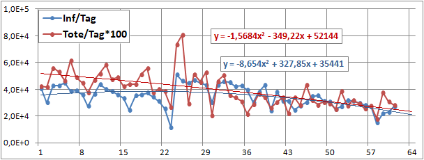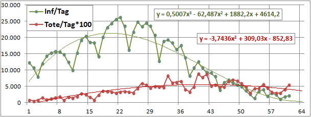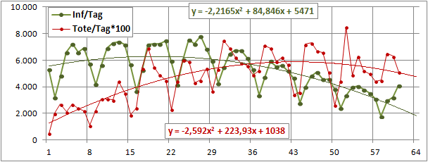 2 Fitbereiche: 5 (quadratisch) und 4 Wochen (linear) bis heute!