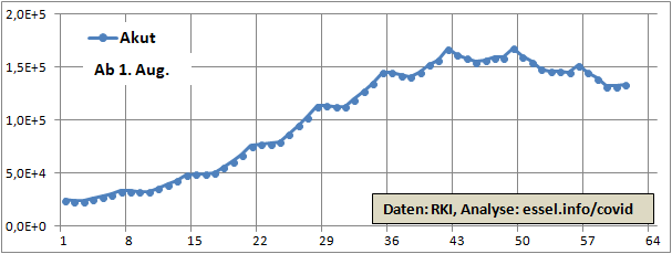 Entwicklung der Zahl der noch akut Ansteckenden.