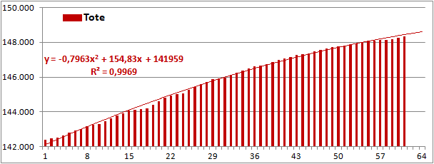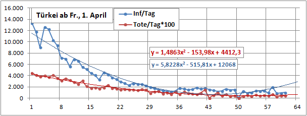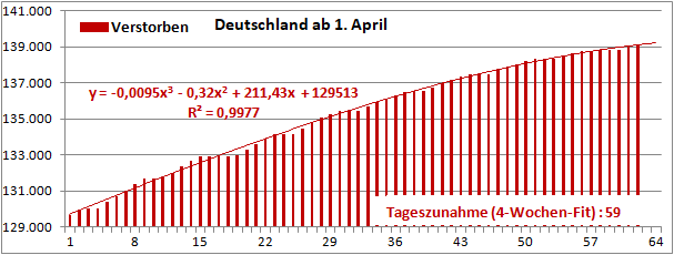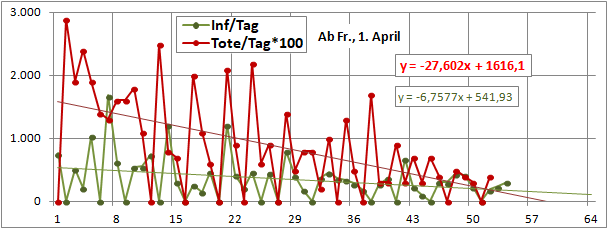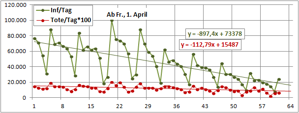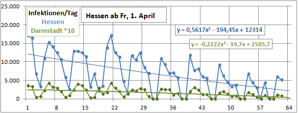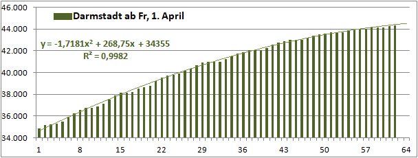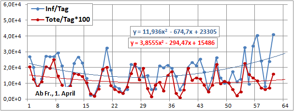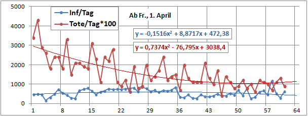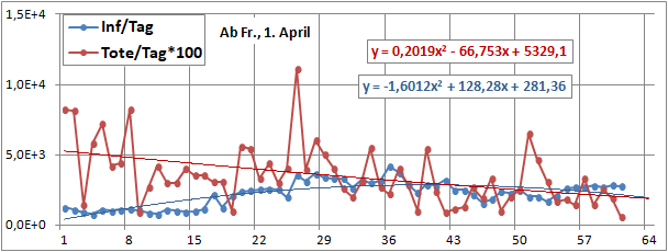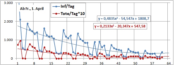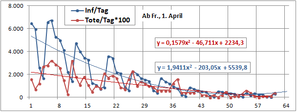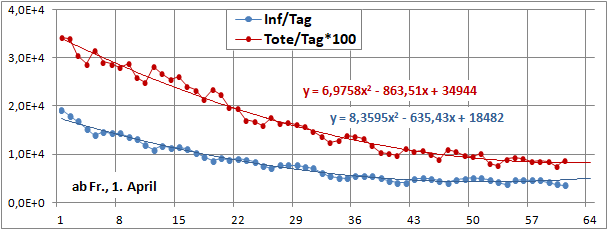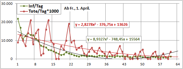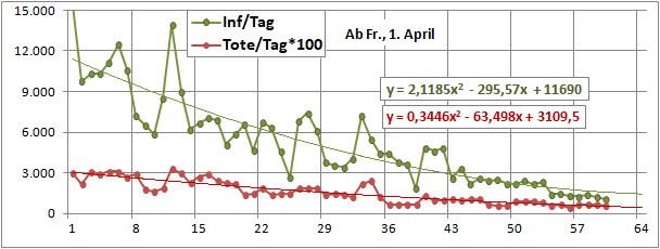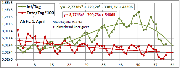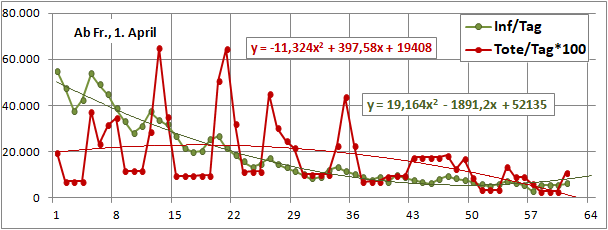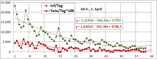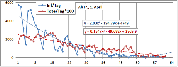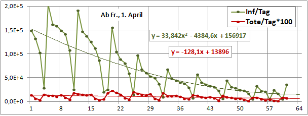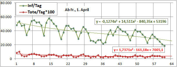 2 Fitbereiche: 5 (quadratisch) und 4 Wochen (linear) bis heute!