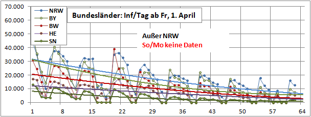 Zitat RKI: "Dieser 4-Tage-Wert bildet das Infektionsgeschehen vor etwa einer bis zwei Wochen ab."