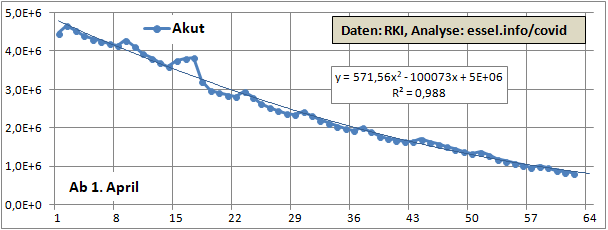 Entwicklung der Zahl der noch akut Ansteckenden.
