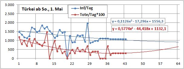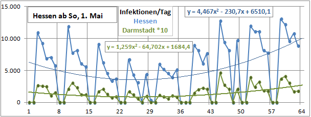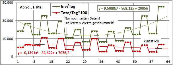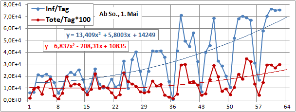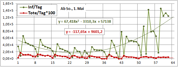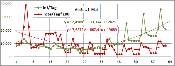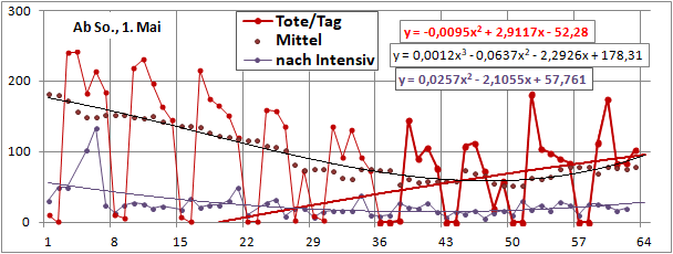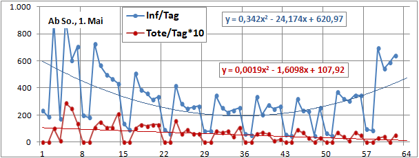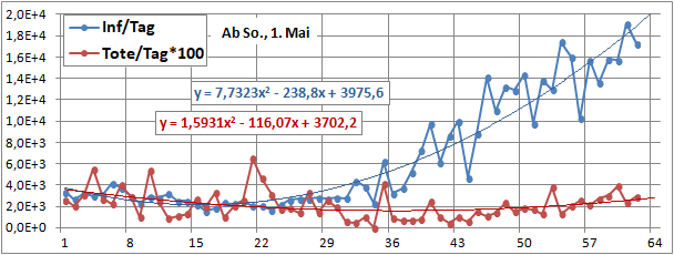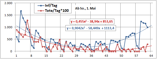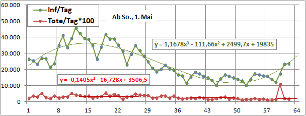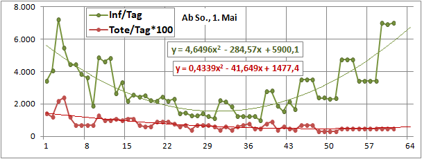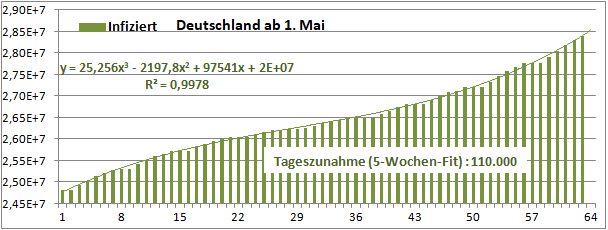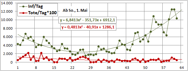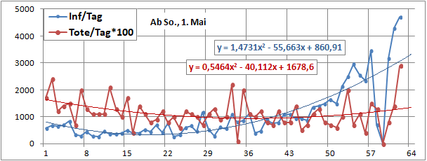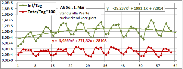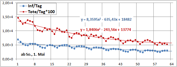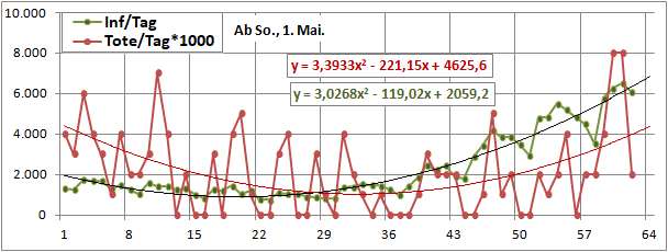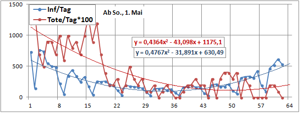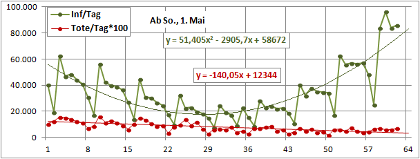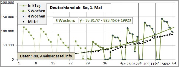 2 Fitbereiche: 5 (quadratisch) und 4 Wochen (linear) bis heute!
