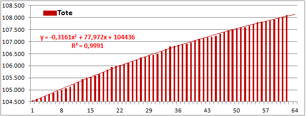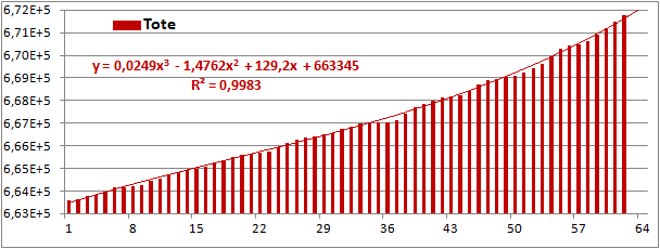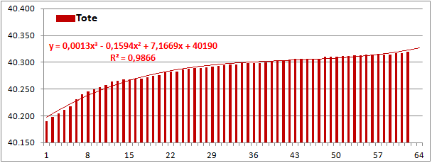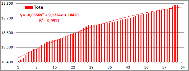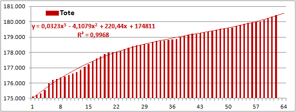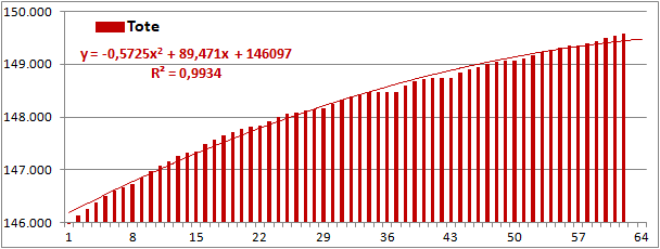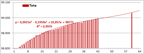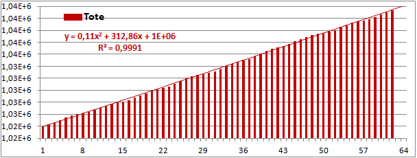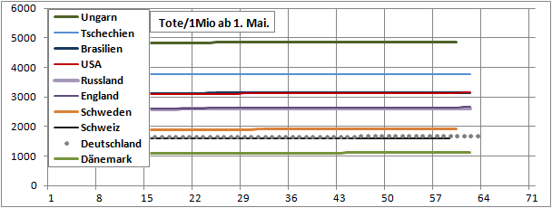 Normierte Zahl der an Corona Verstorbenen.