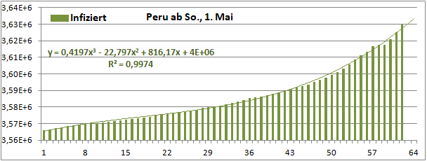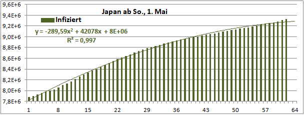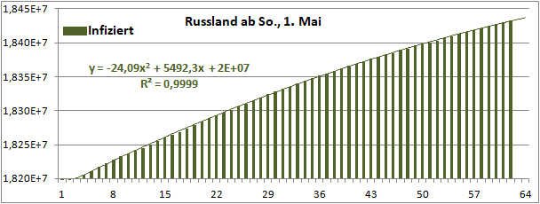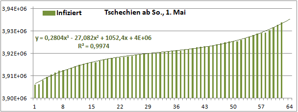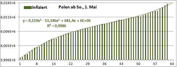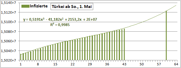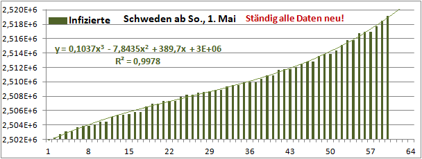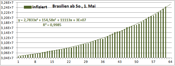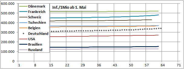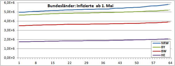 Normierte Zahl der mit Corona Infizierten.