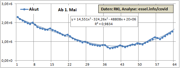 Entwicklung der Zahl der noch akut Ansteckenden.