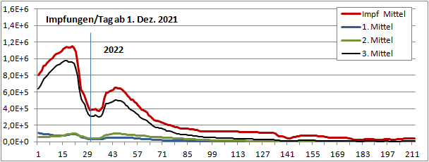 Zitat RKI: "Dieser 4-Tage-Wert bildet das Infektionsgeschehen vor etwa einer bis zwei Wochen ab."