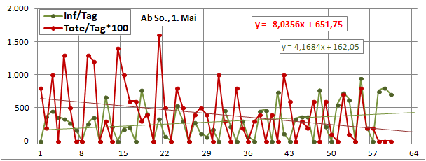 Sterbeinzidenz (pro Woche, pro 10 Mio Einwohner) wäre auf frühere (vor 18 Tagen) Inzidenz zu beziehen.