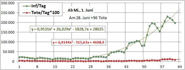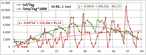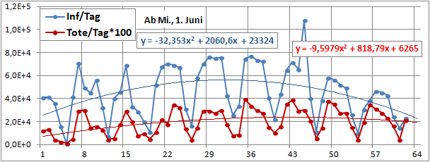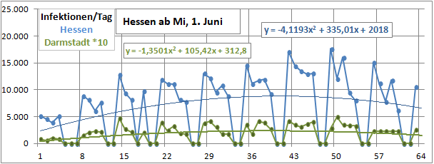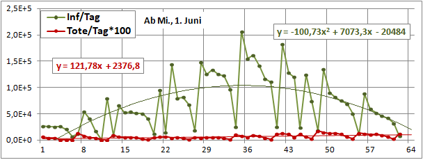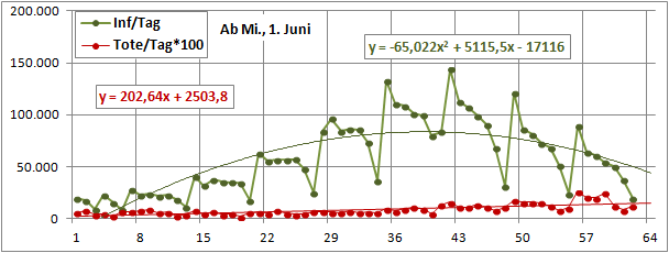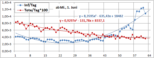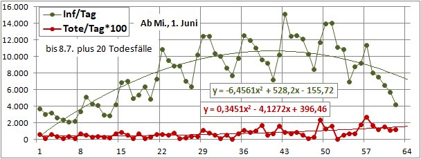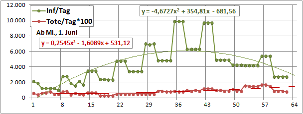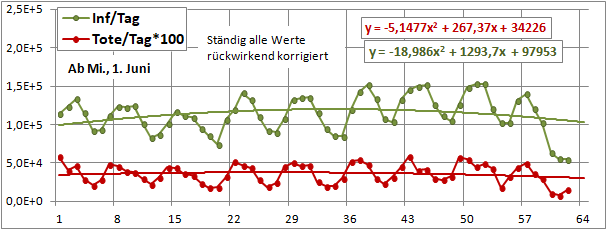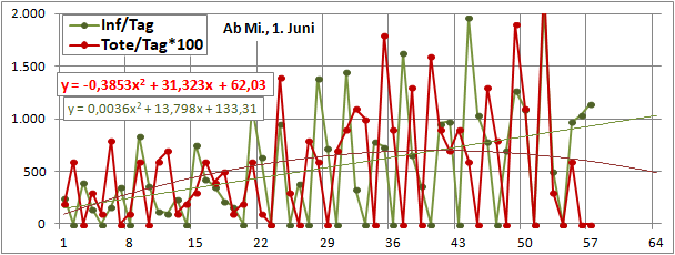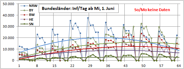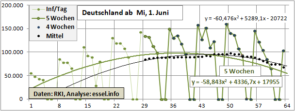 Zitat RKI: "Dieser 4-Tage-Wert bildet das Infektionsgeschehen vor etwa einer bis zwei Wochen ab."
