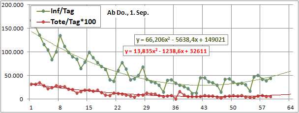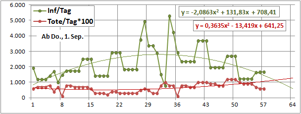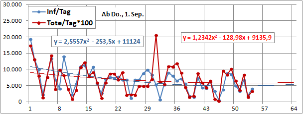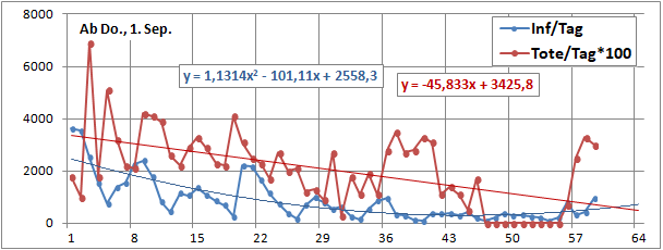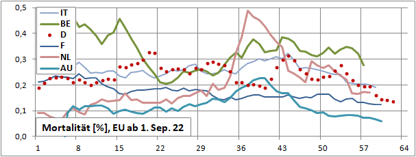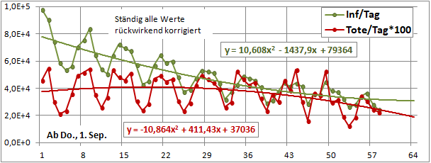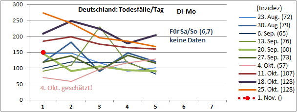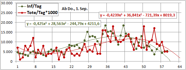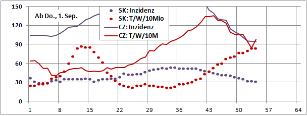 Sterbeinzidenz (pro Woche, pro 10 Mio Einwohner) wäre auf frühere (vor 18 Tagen) Inzidenz zu beziehen.