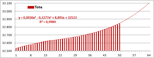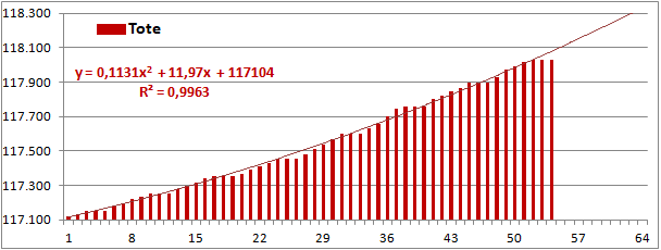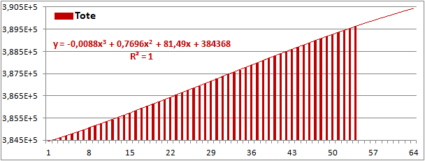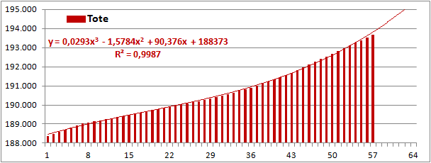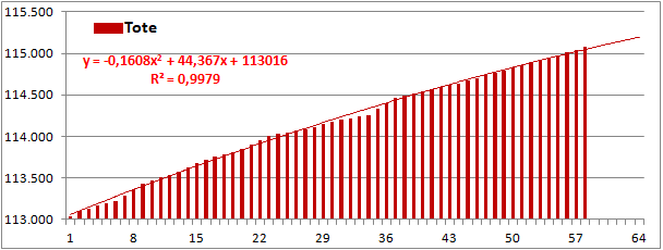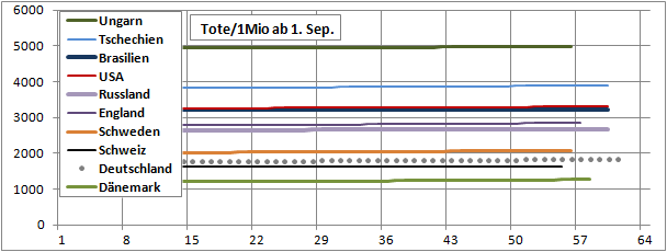 Normierte Zahl der an Corona Verstorbenen.