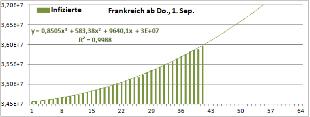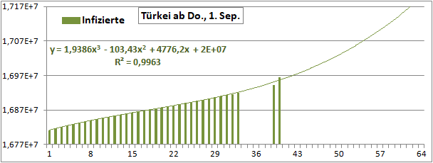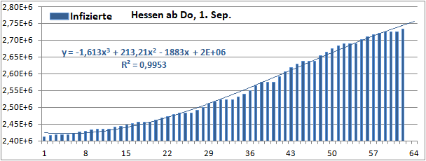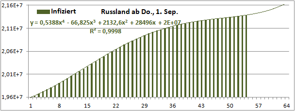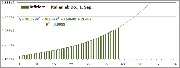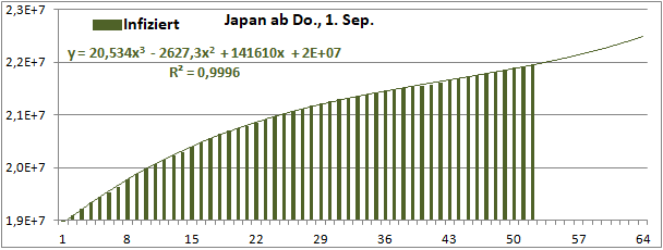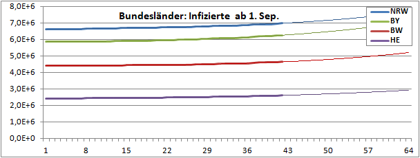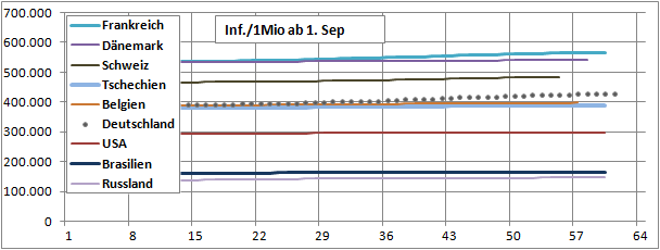 Normierte Zahl der mit Corona Infizierten.