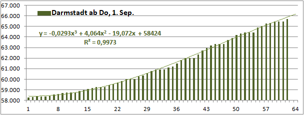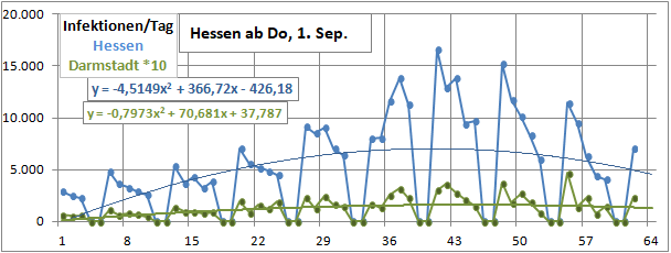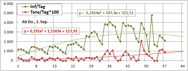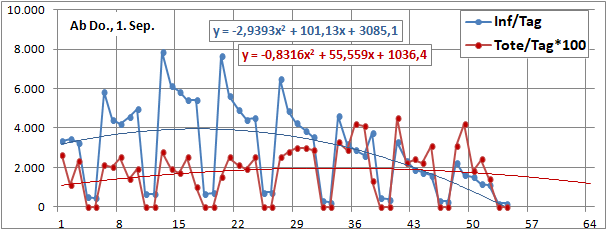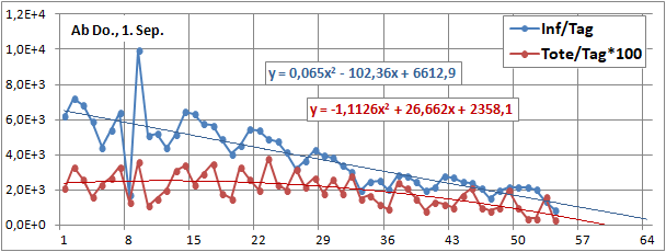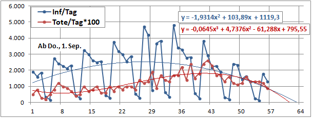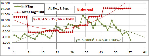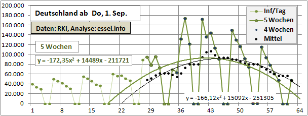 2 Fitbereiche: 5 (quadratisch) und 4 Wochen (linear) bis heute!