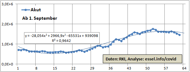 Entwicklung der Zahl der noch akut Ansteckenden.