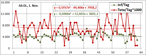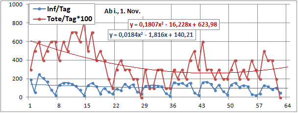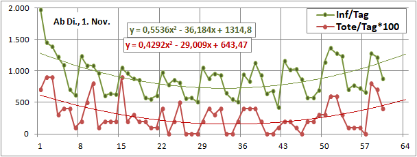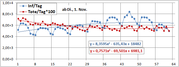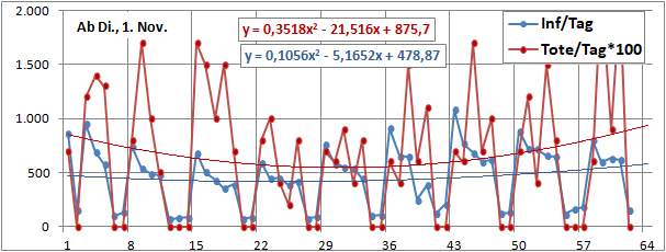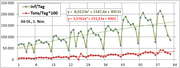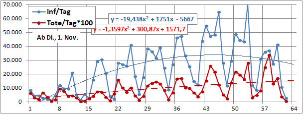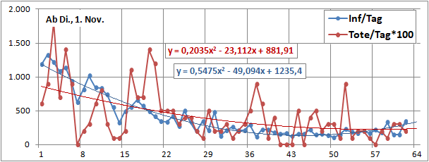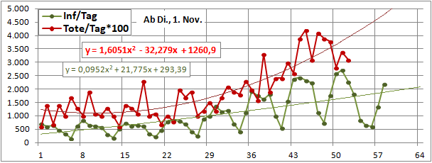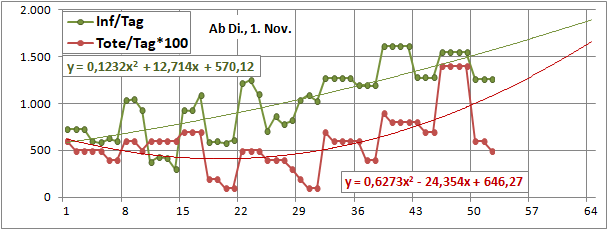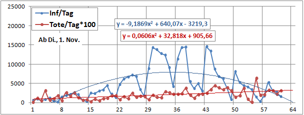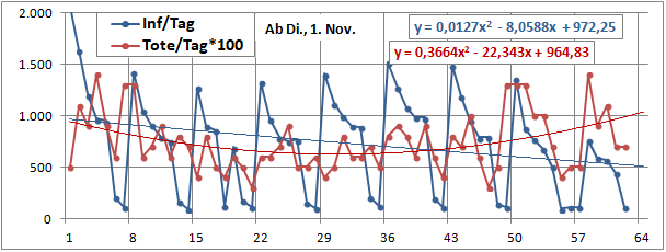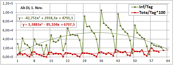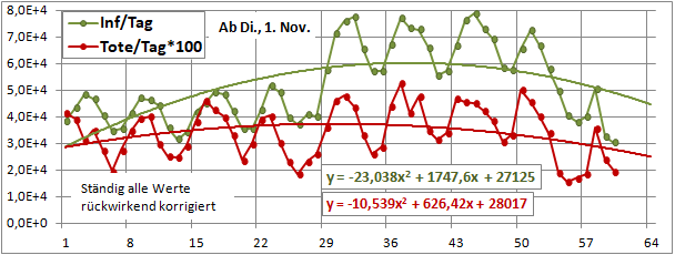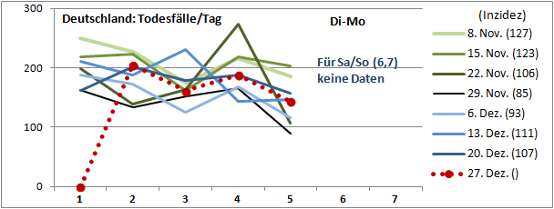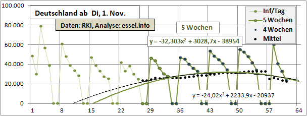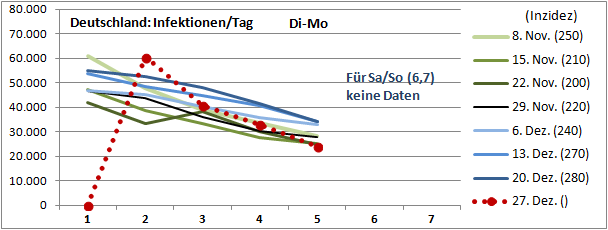 Zitat RKI: "Dieser 4-Tage-Wert bildet das Infektionsgeschehen vor etwa einer bis zwei Wochen ab."