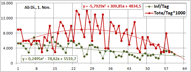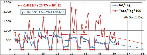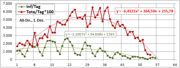Sterbeinzidenz (pro Woche, pro 10 Mio Einwohner) wäre auf frühere (vor 18 Tagen) Inzidenz zu beziehen.