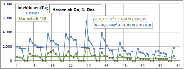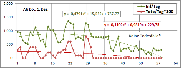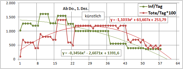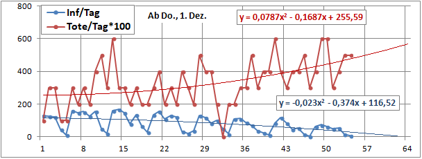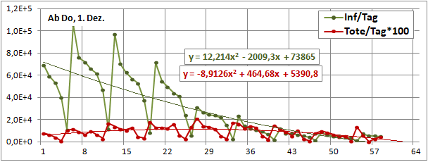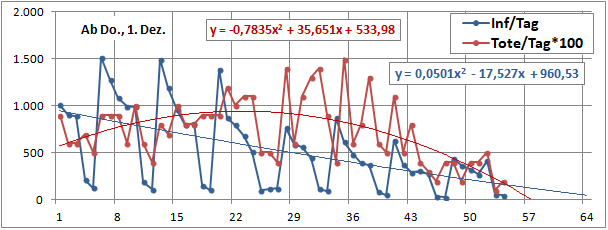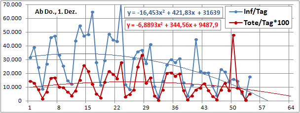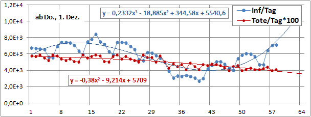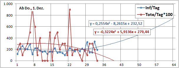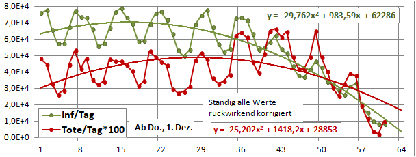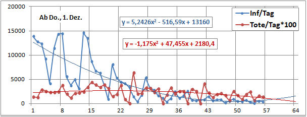 2 Fitbereiche: 5 (quadratisch) und 4 Wochen (linear) bis heute!