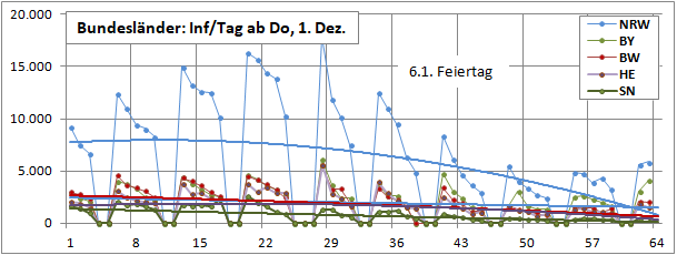 Zitat RKI: "Dieser 4-Tage-Wert bildet das Infektionsgeschehen vor etwa einer bis zwei Wochen ab."
