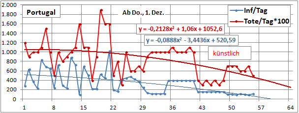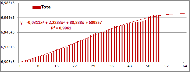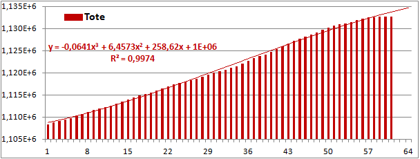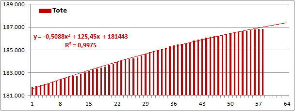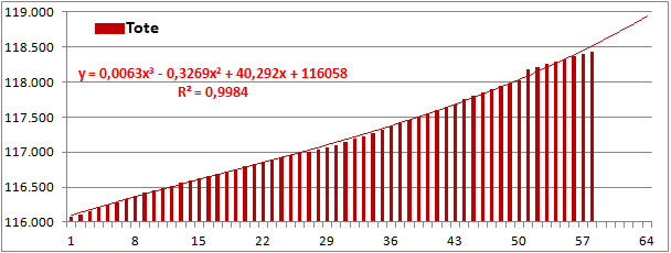 Normierte Zahl der an Corona Verstorbenen.