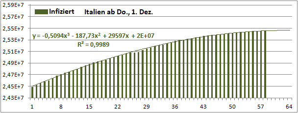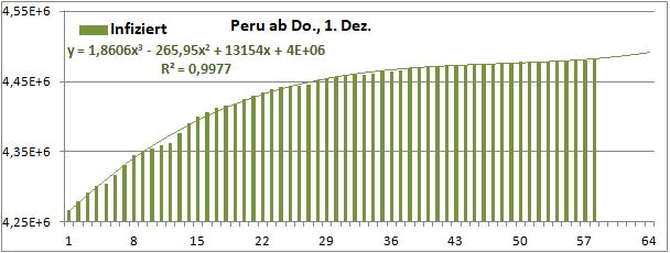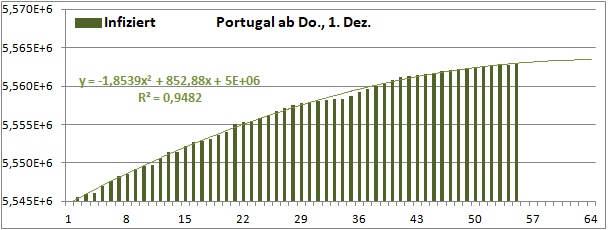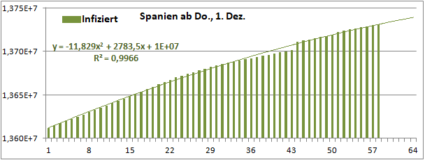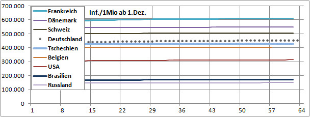 Normierte Zahl der mit Corona Infizierten.