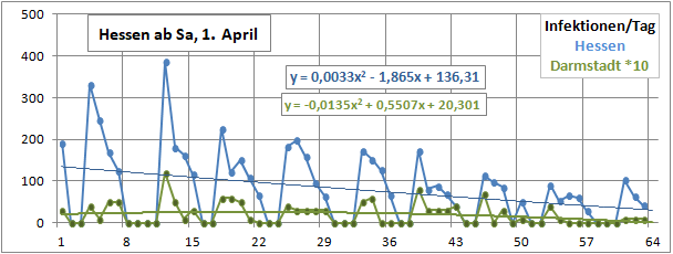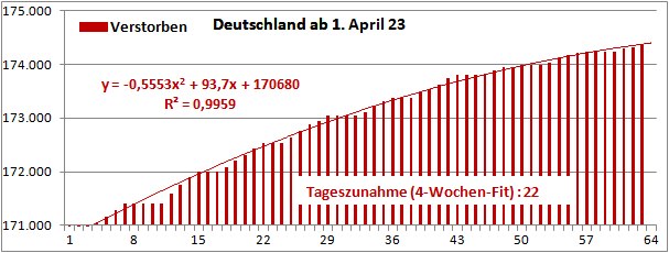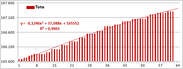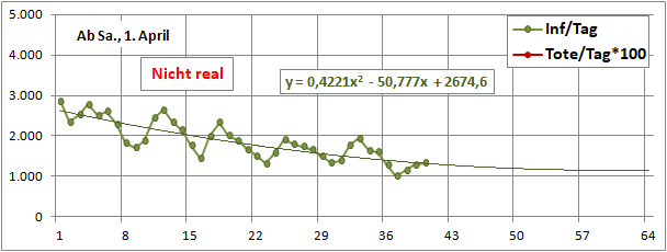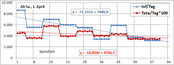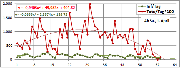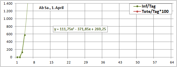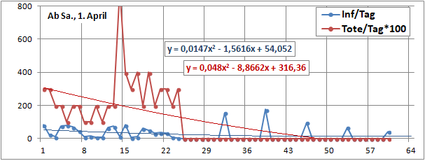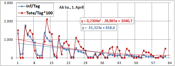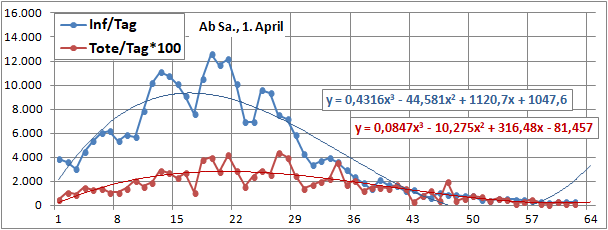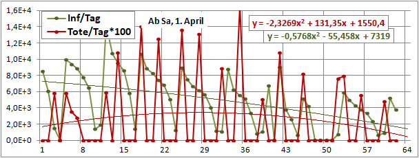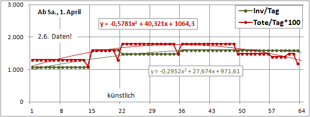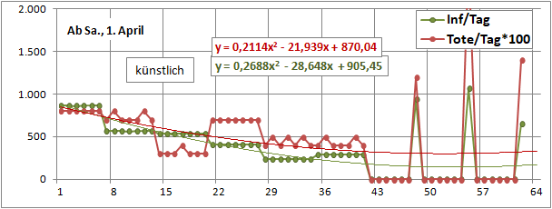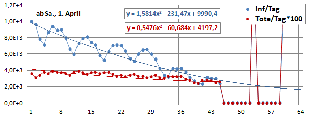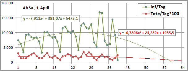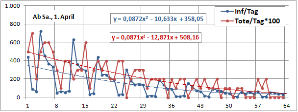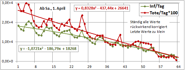 2 Fitbereiche: 5 (quadratisch) und 4 Wochen (linear) bis heute!