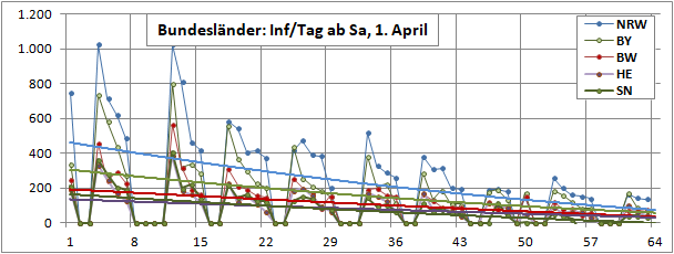 Zitat RKI: "Dieser 4-Tage-Wert bildet das Infektionsgeschehen vor etwa einer bis zwei Wochen ab."